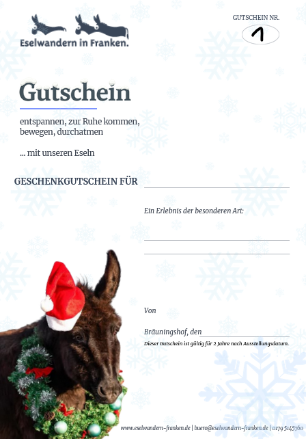Meldet Euch an unter buero@eselwandern-franken.de. Wer zuerst kommt, ist dabei.